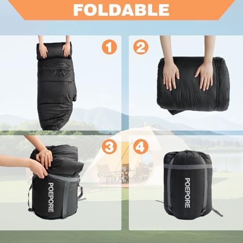 Handy Portability: The sleeping bag comes with a handy storage bag, making it straightforward to roll up and stow away for transport and storage. These options make the POEPORE sleeping bag an excellent alternative for having fun with consolation, heat, and comfort throughout out of doors adventures, whether or not it is tenting within the wilderness or stress-free indoors.