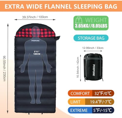Double-Layer Filling: The POEPORE sleeping bag is lined with flannel material, which is comfortable and cozy. Each the highest and backside layers are crammed with 500g/m² (2*250g/m²) hole cotton to stop warmth loss. The double-layer hole cotton filling gives wonderful insulation, preserving you heat and cozy on chilly nights with out worrying about low temperatures.