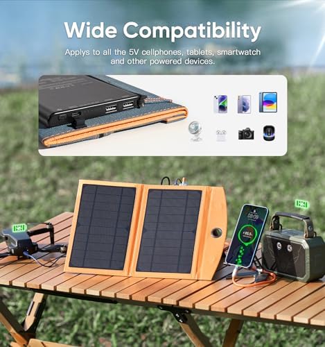 LUVKNIT 10W Transportable Photo voltaic Panel Energy Financial institution is a small dimension, foldable design, dependable photo voltaic charger with two adjustable kickstands, which made it fitted to functions that require a smaller footprint. With as much as 23.7% excessive effectivity monocrystalline photo voltaic cells, the battery financial institution can be totally charged in lower than 5 hours. Nice for RVs, campers, and on the street, ideally fitted to out of doors residing and even sudden energy outages.