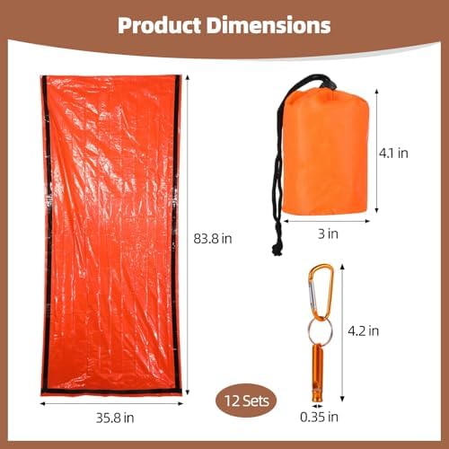 Complete Emergency Package: Keep ready for out of doors emergencies with our full survival set of 12 sleeping baggage, every outfitted with a whistle and compact storage pouch, making it an important addition to your out of doors security tools