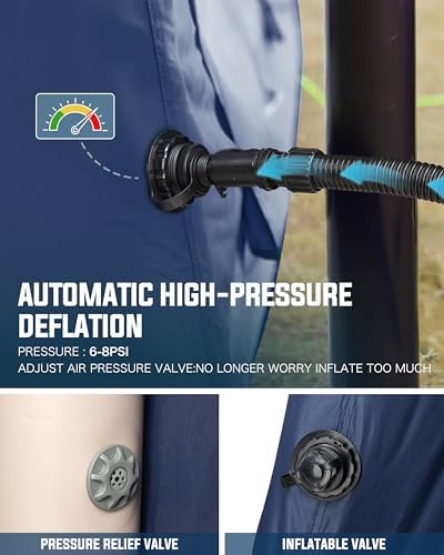 【EASY INSTALLATION】The inflatable tenting tent doesn’t want guide set up of help rods, and it has TPU inflatable pillars. Geared up with a guide hand pump, then you possibly can end assembling the tenting tent in solely 5 minutes.Geared up with sturdy metal nails and windproof rope make the tent extra secure. Make your tenting journey extra fulfilling and comfy.