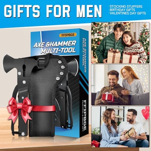 15 in 1 Multitool Axe Hatchet, Tenting Equipment Survival Gear, Multi Software Items for Tenting Climbing Survival, Christmas Stocking Stuffers for Males Adults, Cool Devices Items for Him, Dad, Black