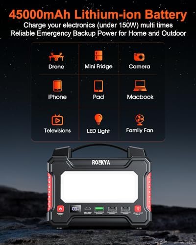 ✅【A will need to have Energy Station】45000mAh capability ( 166.5Wh/3.7V ) with LED gentle, Sort-C port PD 65W Quick Charging output, DC 63W(MAX) output, AC 150W (110V/60Hz) output, USB A quick cost output. It’s a sensible choice for indoor dwelling emergency energy outage, it may possibly provide you gentle at the hours of darkness and hold your cellphone, Laptop computer, Residence AC home equipment (inside 150W). No fears about energy outage in hurricane, storm climate. It’s also an excellent companion for outside Actions like Tenting, Rv Journey, Stargazing, and many others. Unleash Your Energy Wherever with this Moveable Energy Station.