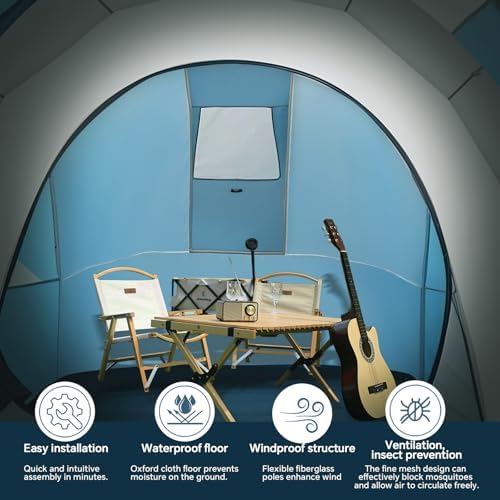Polyester Material: Geared up with sturdy 190T polyester material, PU2000mm, absolutely taped sealed seams to make sure a dry and comfy surroundings for your loved ones. Sturdy fiberglass poles guarantee stability for a long-lasting tenting expertise.