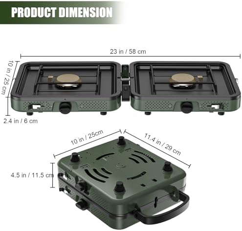 Twin Burner Design: Prepare dinner effectively with the dual-burner setup of this transportable propane tenting range, permitting you to organize two pans or pots (as much as 10” in diameter every) on the identical time. Nice for out of doors meals the place time and comfort are important.