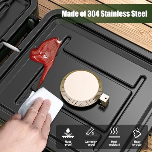 Compact and Transportable: Designed for ease of transport, this transportable folding camp range incorporates a foldable construction, lowering to only 11.4x10x4.5” when closed. It features a carry deal with and storage bag for easy mobility.