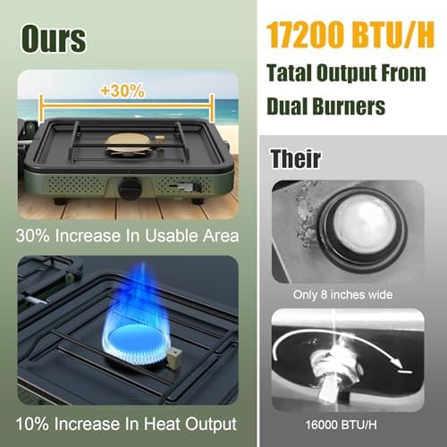 Excessive-Efficiency Heating: Delivering a complete of 17,200 BTU (8,600 BTU per burner), this 2 burner folding range ensures fast and environment friendly cooking, enhancing gasoline efficiency for all of your out of doors adventures.
