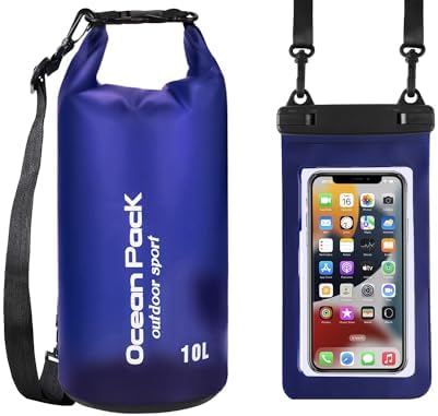 2 items Waterproof Dry Bag for Girls and Males, 10L Roll High Waterproof Backpack Sack with Waterproof Cellphone Case, for Mountaineering, Backpacking, Kayaking, Tenting, Swimming, Boating(Darkish blue)