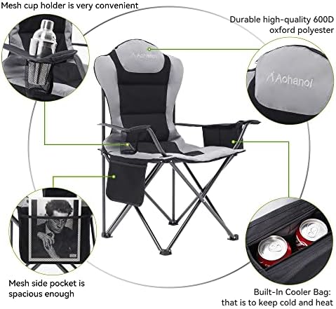 🌲【Multifunctional Outside Chair】Folding tenting chairs with insulated cooler bag (3 cans of cokes capability), Head Pocket, Massive facet storage bag, cup holder, and Storage bag.