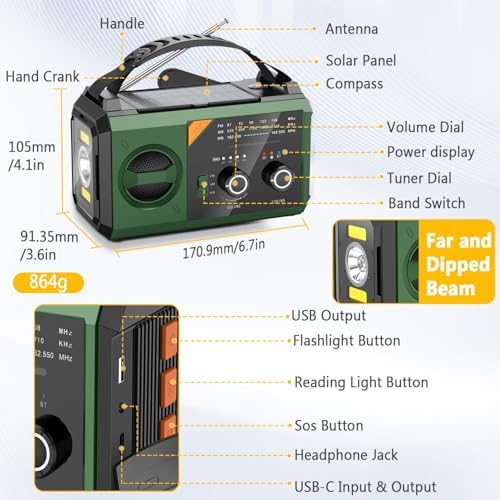 【An All-in-One Out of doors Survival System】 – This isn’t merely a radio; it’s a complete survival toolkit. It integrates twin SOS alarms, a compass, a high-intensity flashlight, and a studying lamp. The 30000mAh battery, hand crank, and photo voltaic panel collectively present a sturdy energy infrastructure for these important survival options.