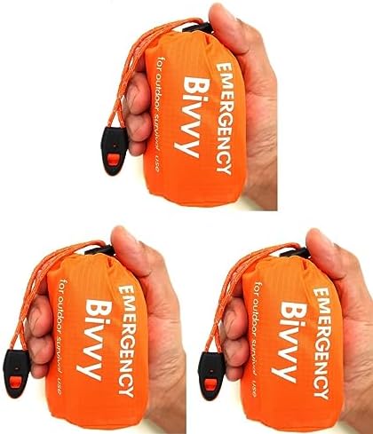 3 Packs Emergency Thermal Sleeping Bag, Survival Bivvy Sacks Blanket with Whistles, Waterproof Light-weight Survival Shelter Blanket Bag Gear for Out of doors Mountain climbing Tenting Sport Journey..