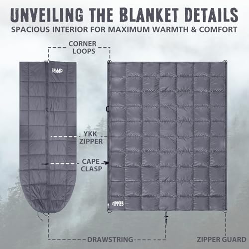 Excessive-Efficiency 3M Thinsulate Filling: Fueled by 3M Thinsulate KL150, the ZIPPIES blanket delivers excellent heat, even in moist situations. Its excessive loft, superior thermal insulation, and low absorption hold you cozy in damp climate. Wonderful breathability wicks moisture away, preserving you dry. OEKO-TEX Normal 100 licensed for security and hypoallergenicity, this tenting quilt gives a consolation vary of 41°F to 59°F, tailor-made to your wants.