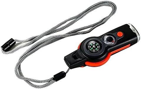 7 in 1 Multi-Operate Compass, Outside Survival Security Whistle Compass Thermometer LED Mirror Magnifying Glass Multitool for Tenting, Climbing, Searching, Fishing and Journey