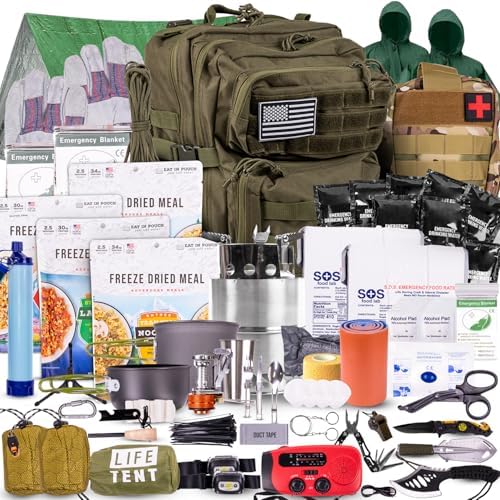 72-Hour Survival Equipment | Emergency Bug Out Bag with First Assist, Water Filter, Meals, Instruments | 45L Tactical Backpack for Tenting, Climbing, Outside Emergency Preparedness