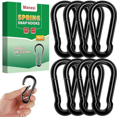 8Pcs Spring Snap Hooks, 3.15” Carabiner Clip, 460lbs Heavy Responsibility Rope Connector, Massive Carabiners for Indoor & Outside, Hammock, Swing, Tenting, Climbing, Fishing, Mountaineering