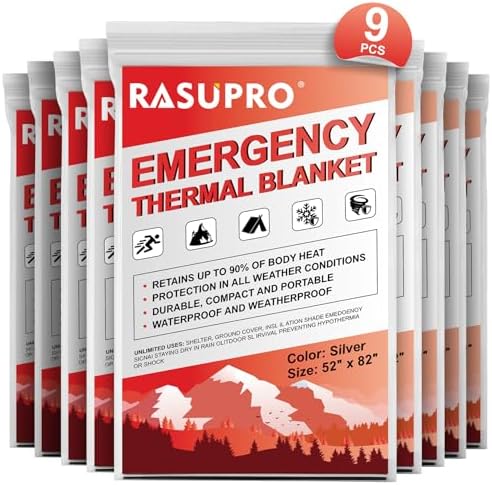 9-PACK EMERGENCY BLANKETS: Rasupro emergency blankets are designed for outside lovers, supreme for mountaineering, tenting, mountaineering, excessive snowboarding, and wilderness survival. These blankets are your dependable companion for each unforgettable journey