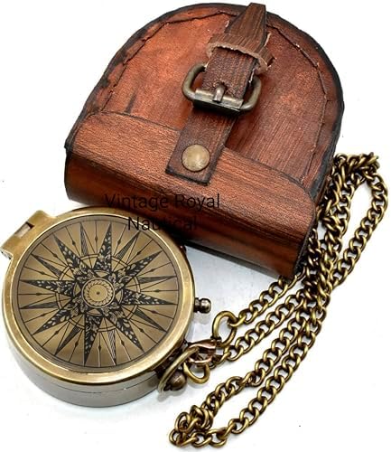 AASIYA Navy Compass for Mountaineering and Survival- Waterproof Brass Nautical Pocket Compass with Leather-based Carry Case & Chain for Tenting Looking Climbing Exploring Geology Outside Actions
