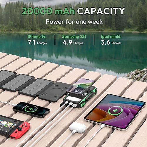 【Magnetic Absorption】 With its cutting-edge magnetic absorption design, this 20000mAh photo voltaic battery financial institution effortlessly attaches to your cellphone, guaranteeing a safe and hassle-free charging expertise. Say goodbye to tangled wires and hey to wi-fi iPhone charging that retains your machine powered up anytime, wherever. Compact and light-weight, this must-have cellphone battery energy financial institution is an important addition to your automotive tenting necessities or light-weight backpacking gear. Do not let low battery damage your adventures.