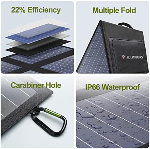 【22% Excessive Effectivity】ALLPOWERS moveable photo voltaic panel 60W makes use of superior polycrystalline photo voltaic modules and might convert as much as 22% of daylight into usable electrical energy. Excessive effectivity saves more room. Waterproof floor remedy successfully protects photo voltaic charger.