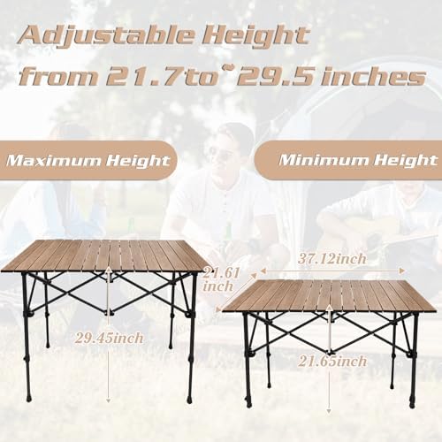 【Device-Free Arrange in Seconds】Assemble or pack this folding desk effortlessly with out instruments. Expands to a beneficiant 36.81″ L x 21.85″ W floor with adjustable peak (21.7-29.5”H). The foldable tenting desk design ensures quick deployment anyplace.