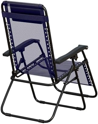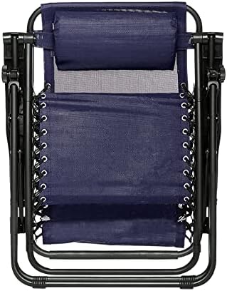 Amazon Fundamentals Outside Textilene Adjustable Zero Gravity Folding Reclining Lounge Chair with Pillow, Navy Blue