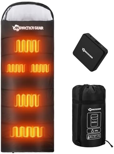Antarctica Gear Heated Sleeping Bag, 5pcs Heating Areas Sleeping Luggage with 16000mAh 12V Battery Pack, 3 Adjustable Heating Ranges Chilly Climate Sleeping Bag for All Season Climbing & Tenting