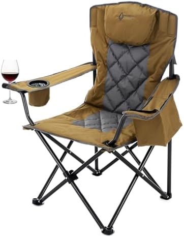 ARROWHEAD OUTDOOR Transportable Folding Tenting Quad Chair w/ 6-Can Cooler, Cup & Wine Glass Holders, Heavy-Responsibility Carrying Bag, Padded Armrests, Headrest & Seat, Helps as much as 450lbs, USA-Based mostly Help