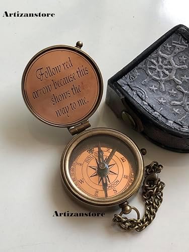 Vintage Brass Compass comply with Your Internal Compass Quote Engraved with Leather-based Case for Tenting, Climbing, Touring