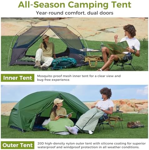 SUPERIOR 4000 MM+ WATERPROOF & WINDPROOF: Constructed from 20D silicone‑coated nylon with totally taped seams, a bolstered ground, and vertical‑wall rainfly design to deflect wind‑pushed rain, this tent ensures you keep dry with no water leakage or dripping contained in the tent. The tent additionally has a cloth with a rainfall resistance of 4000MM +, providing wonderful safety throughout outside actions. Keep bone‑dry in downpours or gale‑power gusts—no leaks, no flapping, no worries