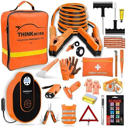 🚗The Street Guardian – The moveable roadside help equipment is designed and hand picked by a gaggle of skilled veterans and specialists to offer each important instruments you want in roadside emergencies.Together with air compressor, first support equipment, jumper, security hammer, multi-purpose pliers, traction rope, hand flashlight, tire restore equipment, emergency blanket, gloves, utility knife, electrical pen, fuse, tire strain gauge, whistle, snow shovel, reflective triangle warning body, raincoat, security vest.