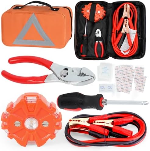 【MULTI-FUNCTIONAL ROADSIDE AIDS KIT】:Heavy Obligation 8Gauge 8FT PVC Insulated Jumper Cables Warmth, oil and acid resistant. Insulated grips on the clamps guarantee secure use and preserve constant conductivity through the winter months. The protection highway equipment additionally contains an LED warning gentle, 2-in-1 screwdriver, restore cable ties, first assist equipment, slip-on pliers and different equipment.