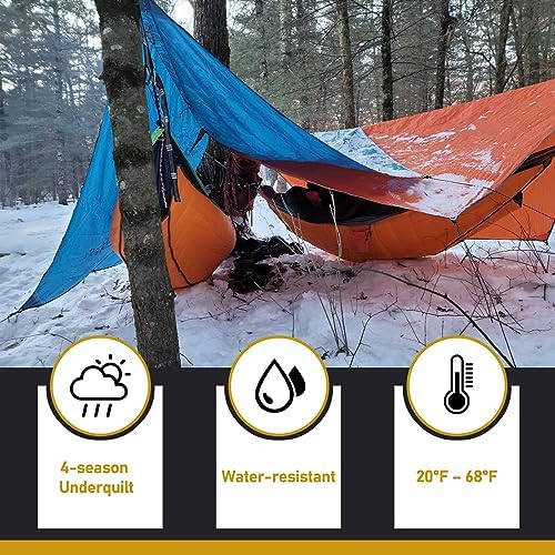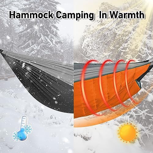 [ LARGE SIZE – FITS ANY DOUBLE HAMMOCK ] – Hammock underneath quilt dimension: Size 98.4 inch, most width 66.9 inch. Extensive dimension, wraps the edges and backside of your hammock. Mix the heat and insulation of a sleeping bag with the consolation of a hammock. Nice match for double hammock, asymmetrical hammock, or massive hammock, additionally lets you diagonal lay for whole consolation in case you use it as a single underquilt, retaining you heat and toasty in chilly temperatures, no Chilly Butt Syndrome (CBS) anymore!