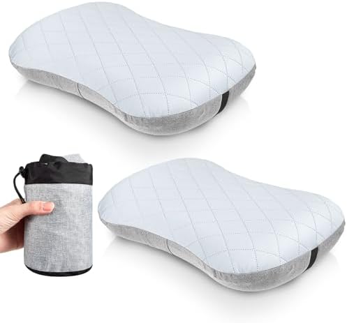 Barydat 2 Pack Tenting Pillow with Detachable Cowl Ultralight Inflatable Pillow Backpacking Pillow Lumbar Assist Pillow Blow up Pillow with Storage Luggage for Journey Air Seat Mountain climbing Sleeping (Grey)