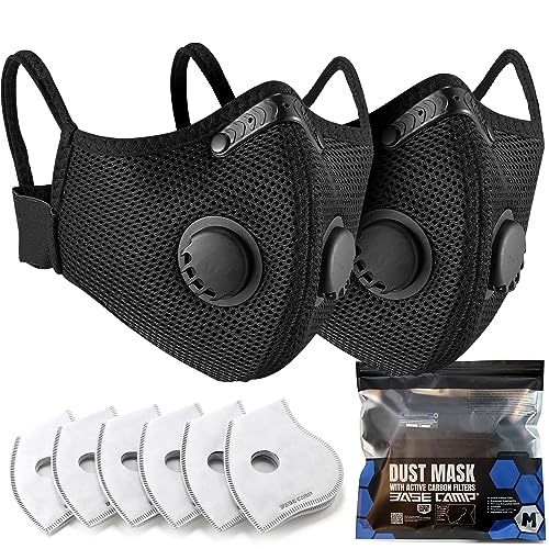 BASE CAMP Improve M Plus Mud Masks 2 Pack, Breathable Reusable Mud Face Masks with 6 Activated Carbon Filters for Woodworking Development Mowing Grinding