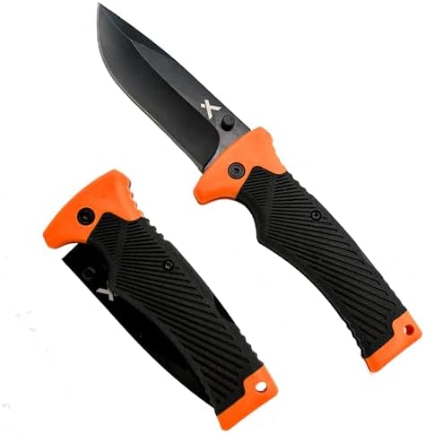 Bear Grylls Final Folding Knife, 3.6″ Metal Blade, EDC Knife with Rubberized Grip, Consists of Sheath with Belt Loop – Black and Orange