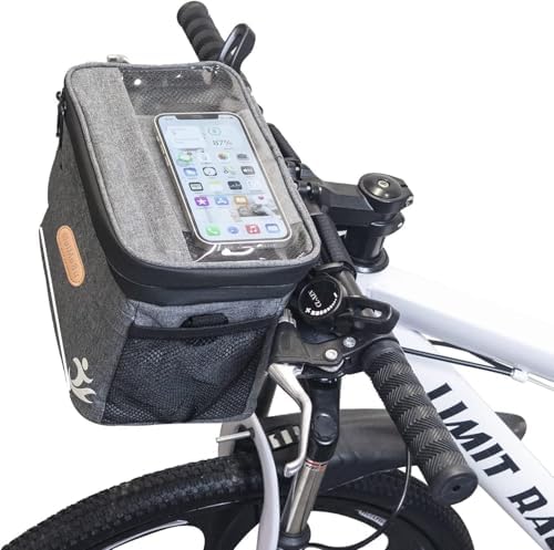 MeiMeSu Bike Handlebar Bag Bike Basket Entrance Bag Waterproof with Contact Display screen Cellphone Holder,Bicycle Cellphone Luggage Bicycle Baskets Insulated Cooler Lunch Luggage