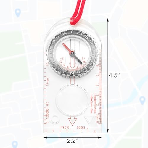 BlingKingdom Multifunctional Waterproof Navigation Compass Map Ruler Magnifier for Explorer Mountain climbing Map Studying and Navigation with Adjustable Lanyard