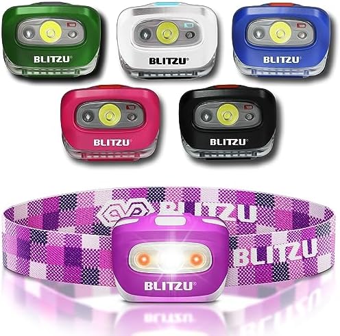 BLITZU Led Headlamps for Camper, Youngsters, Household, Adults. Headlights, Headband Flashlights, Led Head Lights, Head Lamp, Tenting Necessities Gear Clearance, Purple