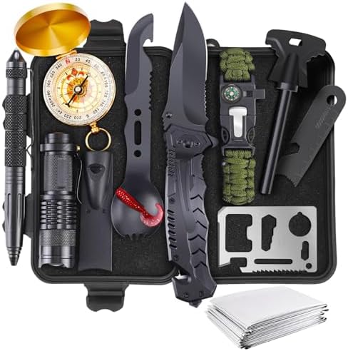 Folding knife, survival bracelet, tactical pen, compass, flashlight, flint stone & scraper, multifunctional software card, emergency Blanket, 8 in 1 multi-use spork, and pretend shrimp bait,13 high-quality, standard and sensible survival instruments, tactical gears,and mountaineering gears are nicely organized in a water-proof field which is made from navy grade ABS.It is an incredible automotive emergency package,software field and catastrophe preparedness.Excellent Christmas birthday present concepts for males dads who like tenting, backpacking, hinking,fishing, and different outside adventures.Additionally cool devices items for teen boys.