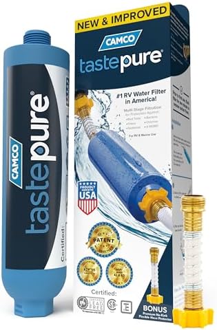 Expertise pure and clear water in your journeys with Camco’s Tastepure RV/Marine Water Filter. This dependable American-made filter simply attaches to any water provide for clear ingesting water wherever you go. The Tastepure RV water filter is a camper must-have! With its excessive water-flow design, you’ll be able to keep hydrated with out compromise. Say goodbye to kinks and strains with the included versatile hose protector. Relaxation assured, this RV water filter system exceeds business requirements and has undergone rigorous testing. Its certifications converse to its high quality and reliability, making it a trusted selection for adventurers worldwide. Improve your tenting expertise to the fullest! Improve to Camco’s Tastepure Marine/RV Water Filter and uncover the distinction. Your thirst for journey deserves nothing however the very best.