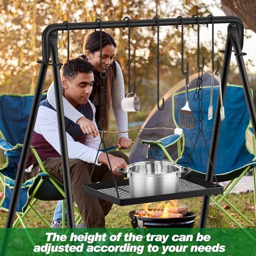 Campfire Swing Grill Stand Adjustable Grill Campfire Cooking Stand Hanging Grill Rack with 8 Hooks and Equipment Campfire Cooking Gear for BBQ Picnic Out of doors Cookware Occasion