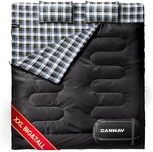 XXL SIZE – Canway double sleeping bag for adults measurement is 90.6″ Size 61″Width, so lofty and vast even for 2 7 ft individuals to have loads of room to stretch out. The separated backside zipper helps you to ventilate the foot part for higher temperature management