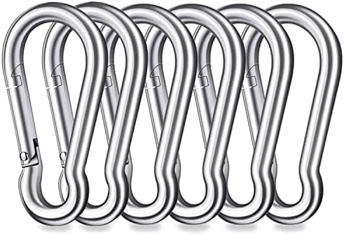 Carabiner Clips Heavy Obligation – 6 Pack 304 Stainless Metal Spring Snap Hook for Out of doors Tenting, Mountaineering, Swing, Hammock, Gymnasium