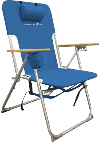 Caribbean Joe Folding Seashore Chair, 4 Place Transportable Backpack Foldable Tenting Chair with Headrest, Cup Holder, and Picket Armrests
