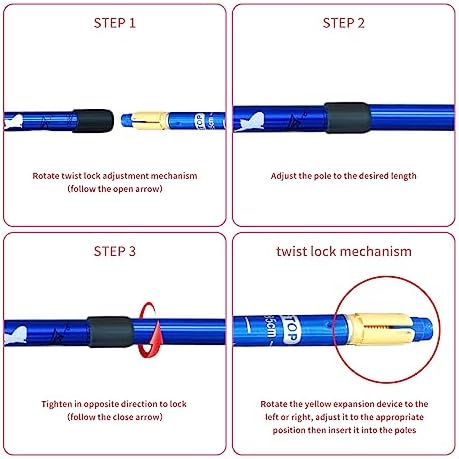 TWIST LOCK MECHANISM: Utilizing a twist lock mechanism these strolling poles could be made the right top for youngster. Additionally included are two totally different tip choices (carbide & rubber) which imply you should use them over any type of terrain from sand and dirt to pavement, rocks, grass, dust paths and even the tile flooring in your house.