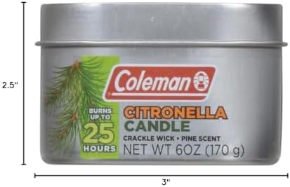 Coleman Pine Scented Citronella Candle with Picket Crackle Wick – 6 oz Tin