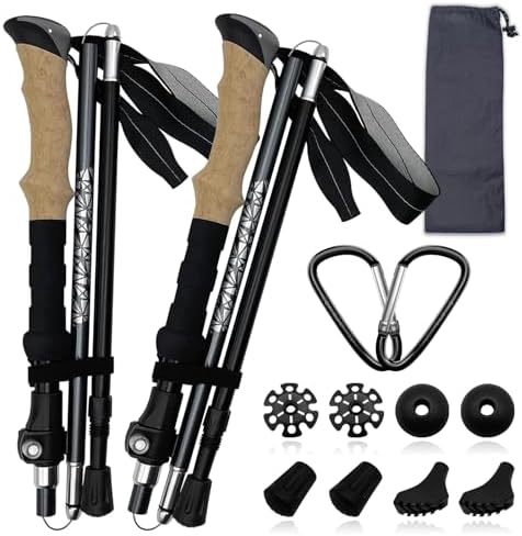 Improve Your Foot Print!: One aluminum folding mountaineering pole with cork grip weighs solely 10 ounces and is extraordinarily steady and unbreakable! Light-weight aluminum foldable mountaineering poles with adjustable cork deal with make life simpler for you on the mountain.