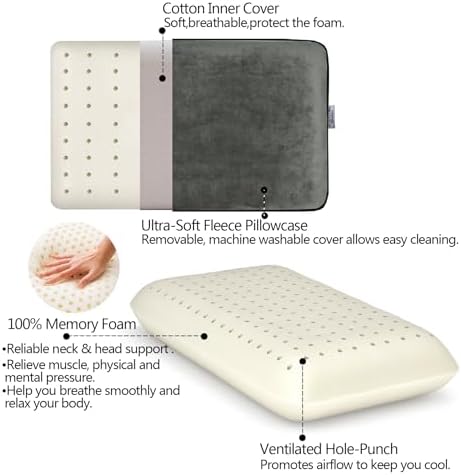✅【Reminiscence Foam Journey Pillow】 With medium-density reminiscence foam and perforated design for air flow. Our reminiscence foam pillows preserve your backbone in right alignment in your head and ample assist for shoulders, neck, and again, helps you breathe easily and relaxes your physique.