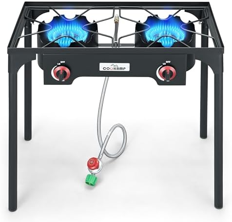 POWERFUL: Whole output 110,000 BTU. Produced by two 55,000 BTU forged iron burners. Consists of CSA Listed 0-20 PSI adjustable regulator and steel-braided hose