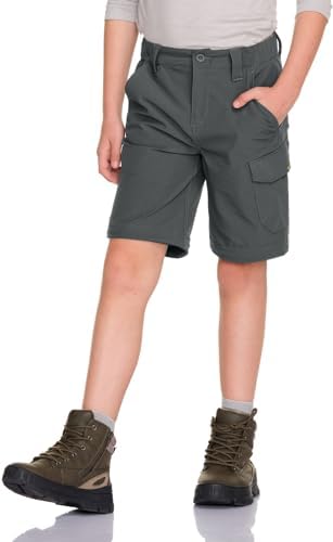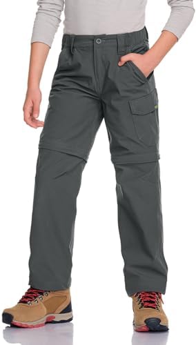 CQR Children Youth Mountain climbing Cargo Pants, UPF 50+ Fast Dry Convertible Zip Off Pants, Outside Tenting Pants